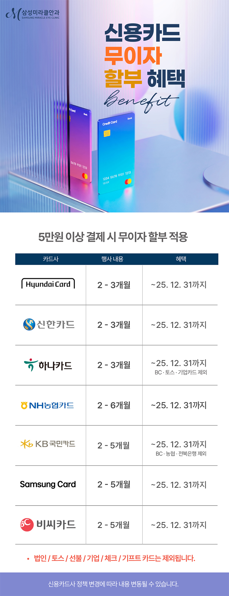 카드사별 혜택안내 이제 부담없이 시력교정하세요!